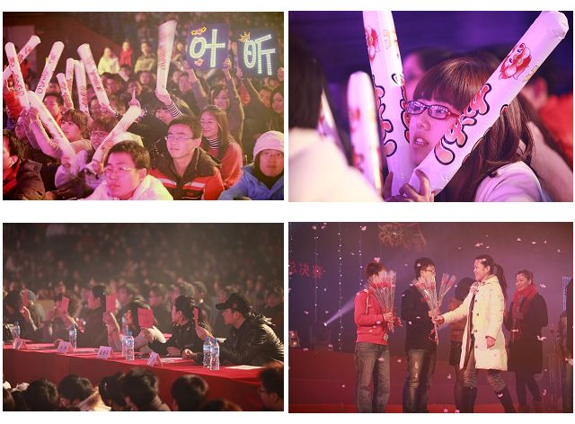 台上选手的精彩表现,感染了台下每一位观众。他们完全将自己的情绪同选手们连接在一起。手中的荧光棒随着音符轻轻摆动,写满祝福的标语牌和横幅在会场中摇动,他们毫不吝惜自己的掌声和欢呼,为选手们加油鼓劲,展示了北理工人特有的热情。本次歌会的评审也充分体现了“评学生自己真正喜欢的歌手”的原则,由场上评委及大众评审上台投票选出自己心中的冠亚季军。根据选手所得鲜花,得出韩欣欣夺冠,张欣和叶昕并列亚军的最终结果。同是来自我校独立音乐协会的三“欣(昕)”,在深秋歌会的舞台上熠熠闪光。