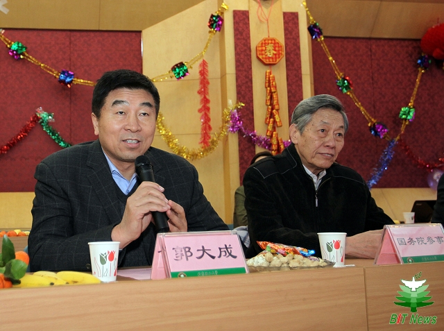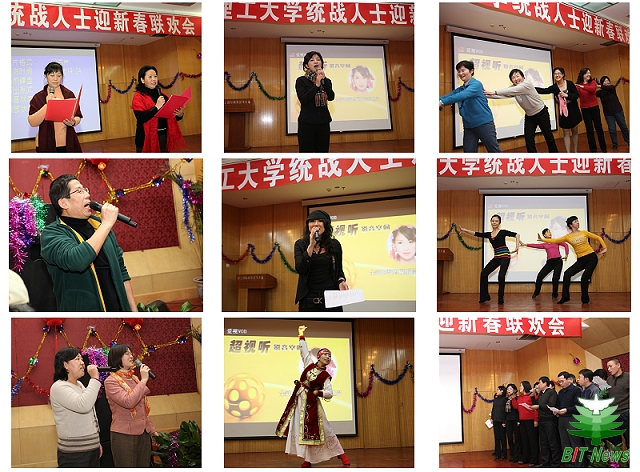 郭大成首先代表学校党政向与会人员简要介绍了学校过去一年中的主要工作,对统战人士为学校工作所做出的贡献表示衷心的感谢,并向统战人士致以新年的问候和诚挚的祝福。统战部、侨联、民革支部、民盟支部、农工支部、九三支社、无党派人士等向大家集体大拜年。