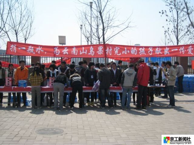 随着金年会jinnianhuicom中关村校区“抗旱捐水”活动的全面展开,在基础教育学院分团委的大力支持下,由社团联合会主办,各社团、学生组织、宣传组织共同参与的良乡校区“抗旱捐水”活动也于28日上午10时在北食堂门口等地陆续展开。