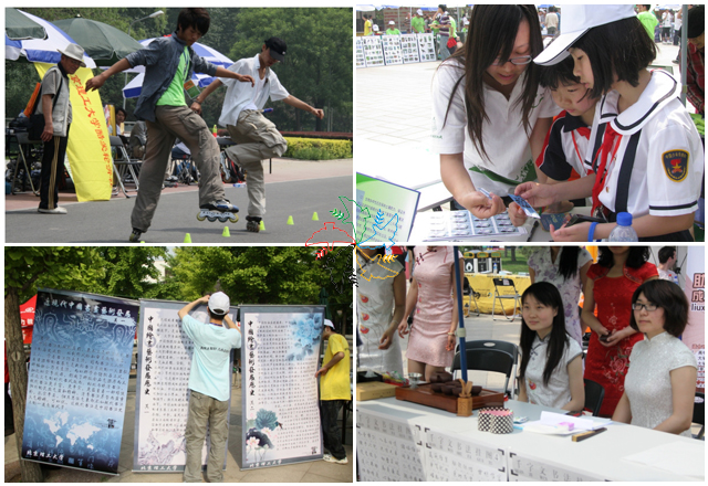 国学社的社员们用自己无私的奉献精神展现着对优秀传统文化的厚爱,在现场展示中国茶道、书法、诵读、古装和传统礼节,介绍国学社的国学沙龙、国学支教、古迹游览、经典晨读、国学讲座等精彩的活动,引来的大量的观众的观看和参与。
