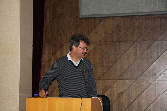 在报告会上,Kapitaniak教授向在座的师生介绍了其课题组在同步和混沌研究方面的最新进展。特别介绍了物理、生物、机械工程和经济领域普遍存在的单向耦合环形系统,Kapitaniak教授指出系统的耦合可导致系统出现由周期运动到准周期运动到混沌运动以及超混沌运动一系列复杂变化。