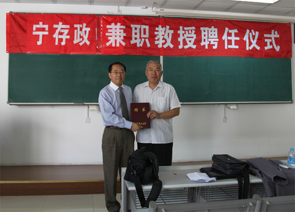 受聘仪式由魏名山主持。邹炳锁介绍了宁存政教授的学术经历:宁存政教授分别于1982年、1985年获中国西北大学物理系学士学位和理学硕士学位,于1991获德国斯图加特大学理学博士学位。1994-1995年,在亚利桑那大学做博士后,并于1996-1997年成为亚利桑那大学研究助理教授。1997-2006年是美国国家航天航空总署AMES研究中心资深科学家,其中2000-2004年担任计算纳米科学小组负责人及项目经理,2004-2007年担任纳米技术项目负责人。2006年至今,亚利桑那州立大学电子学教授。主要从事半导体纳米材料、纳米等离子体学等方面的研究工作。研究兴趣包括半导体纳米线的生长,表征,物理及其光电子方面的应用(包括激光,探测器,发光二极管,及太阳能光伏等器件);纳米等离子体学及纳米半导体光子学;半导体光电子物理,器件物理,微观理论及多体相互作用,半导体纳米结构的电学及光学性质。发表上百篇高水平论文,并多次主持国际会议。