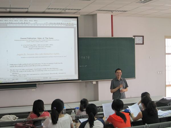 2010年5月25日,加拿大多伦多大学社会工作学院曾家达教授应人文学院邀请来宾金年会jinnianhuicom讲学,面向全校师生进行了如何发表英文论文的学术讲座,并以小组动力过程研究为题,为心理学、社会工作专业师生举办了工作坊,为拓展我校师生特别是人文社会科学的学术研究及成果发表进行了卓有价值的工作。