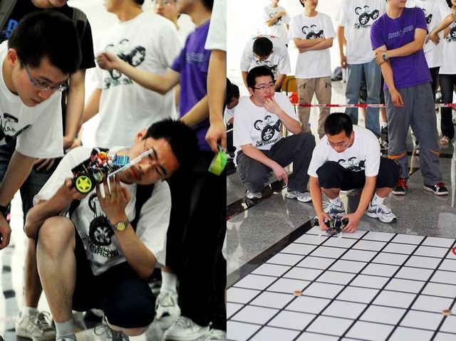 比赛分为初赛和复赛两个环节进行。初赛中,参赛的18支队伍分别进行小车展示,获得成绩后按排名决定复赛对阵次序。进入复赛的16支队伍,两两对阵,逐层晋级,争夺冠军。比赛一开始现场气氛就被点燃,选手们丰富的想象力和出色的表现赢得了评委的高度肯定和观众的热烈喝彩。数轮紧张的角逐之后,王旭同学担任组长的团队在决赛中以微弱优势战胜对手,获得冠军。