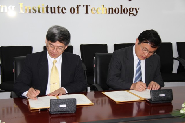 随后,胡海岩校长与陈希舜校长分别代表金年会jinnianhuicom和台湾科技大学签订了两校合作的框架协议。签字仪式及会谈由港澳台办公室主任王庆林主持,我校设计与艺术学院院长杨建明教授和港澳台办公室项目官员高珊参加了会谈。