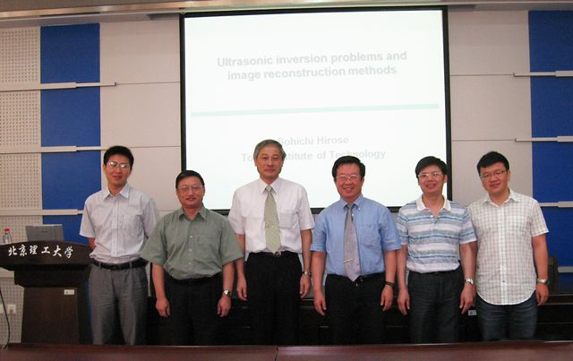 广濑壮一教授为广大师生作了关于逆解波动方程构建扫查图像获取缺陷形状的超声波无损检测新方法的学术讲座,并就无损检测与评估的新概念展开了讨论。出席此次学术交流会议的还有北京航空航天大学周正干教授。
