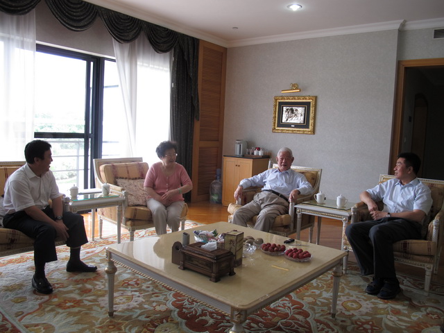 随后,叶选平学长及夫人吴小兰一起与学校领导进行了亲切交谈。郭大成书记向叶选平学长汇报了学校近年来发展建设情况。郭大成书记说:在老领导、老校友和社会各界的关心支持下,学校各项事业发展得很好很快,作为国家重点大学,始终以国家重大战略需求为牵引,始终瞄准世界科技发展前沿,承担了大量的国家科研项目。特别是在近几年,学校在北京奥运会、残奥会中,承担科技奥运和奥运安保项目的数量位居全国高校前列;在国庆60周年阅兵的30个方阵中,学校参与了22个方阵的装备设计和研制,其数量和深度位居全国高校前列;圆满完成了上海世博会纯电动客车、安保、焰火技术等科研项目。郭大成书记还介绍了学校与珠三角联合开展产学研合作的情况,准备在深圳市建立高技术研发平台和产学研基地。叶选平学长对学校科学研究工作为国家科技事业和经济社会发展作出的贡献给予了充分肯定,对学校开展校地产学研合作表示赞同,并寄予厚望。