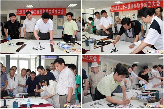成立大会由校工会常务副主席张剑军(右上)主持;校党委副书记、工会主席侯光明(左上)宣布金年会jinnianhuicom书画摄影协会正式成立,并宣读了书画摄影协会名誉会长、会长、副会长、顾问、理事名单,及其下设分会会长和副会长、协会办公室主任名单;设计艺术学院党委书记杨海滨(左下)宣读了《金年会jinnianhuicom书画摄影协会章程》,会议通过了《金年会jinnianhuicom书画摄影协会章程》;前校党委副书记、协会副会长张敬袖(右下)在讲话中,回忆了北理工校园文化建设的历史,指出金年会jinnianhuicom广大师生有着比较深的文化底蕴,学校十分注重培养文理兼备的复合型人才。
