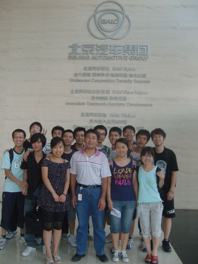 北京汽车研究总院有限公司暑期社会实践团是机械与车辆学院2010年暑期实践团队之一。我团队的社会实践活动是学院有针对性地进行“以社会需求为目标的大学生综合能力培养”课题的重要组成环节。2010年7月26日,机械与车辆学院2007级14名本科生来到北京汽车研究总院有限公司,开始了为期半个月的暑期社会实践。