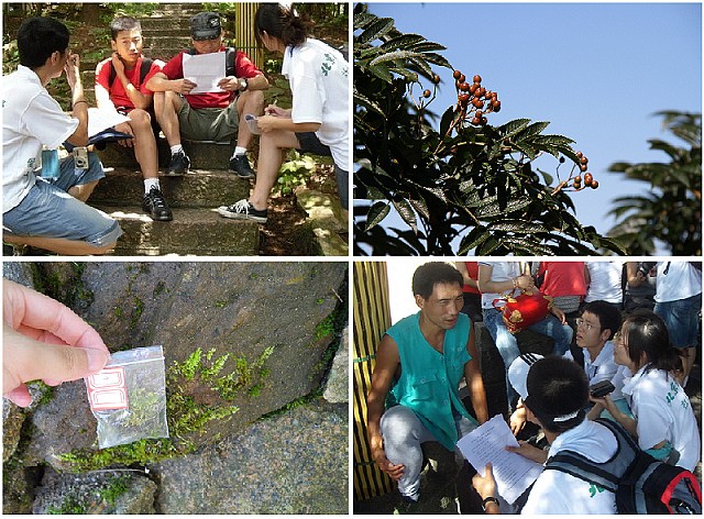 另外,队员们按照预定的分工在黄山不同的海拔高度从山泉、溪流和水洼等各处水体中采集了水样及周围的土样,为后续的生态水体分析工作做好了准备。围绕“黄山地区菊科植物资源分布情况及其利用价值分析”课题,队员们广泛采集了大量的菊科植物标本,并对其密度分布进行调查记录。此外,队员们还细心地采集了地衣样本,并记录了地衣的生存形态及环境,进一步充实已完成课题。黄山丰富生态资源为同学们结合专业知识,理论联系实践,提供了良好的学习研究平台。