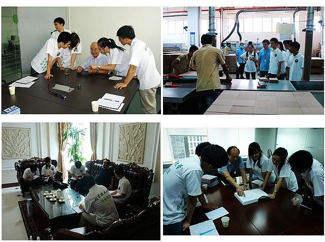 (左上:采访连环雄校友;右上:参观张文东校友工厂;