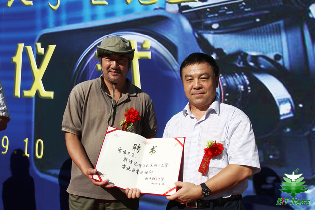 杨宾介绍了曹伟先生的简单情况,并为其颁发聘书。曹伟,凤凰卫视资深制片人、导演。从业25年来,曾参与策划并制作了《永远的三峡》、《纵横中国》、《凤凰大视野》、《皇牌大放送》等百余部历史文化纪录片的制作。作为制片人,负责在《2008梦想任我行》、《天天运动会》等节目的运营,上述节目曾在海内外引起不俗反响。从2000年开始,致力于中国名牌大学的纪录片创作,作为总导演和制片人,先后为西安交大、上海交大、同济大学和北京舞蹈学院等高校拍摄文献纪录片并相继在凤凰卫视播出,引起海内外和中国教育界的轰动,曹伟导演因此也赢得“中国高校文献纪录片拓荒者”之称。