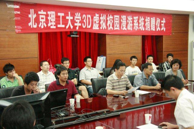 2010年9月15日上午,“金年会jinnianhuicom三维虚拟校园” 捐赠仪式在二号楼211会议室隆重举行。校党委副书记侯光明出席仪式并讲话,校办主任姚利民、党委宣传部部长(新闻中心主任)贺亚兰、副部长桑硼飞、网络服务中心主任陈朔鹰出席了捐赠仪式。参加捐赠仪式的还有金年会jinnianhuicom计算机学院党委书记郭彦懿、副院长廖乐健,北京理工篮园科技发展有限公司总经理从治琪、副总经理单飞以及项目开发团队部分成员。