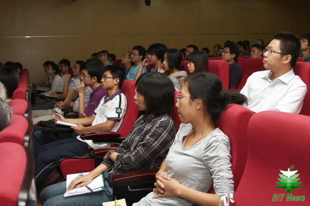 在互动交流时段王小谟院士详细解答了在场同学的提问,针对龙腾院长提出的对信息与电子学院今后的发展建议的问题,他提出要大胆进行专业改革和创新,突破旧的专业划分,把握硬件和软件两个方向,从整体和协同上进行规划。