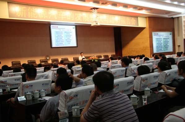 在校友会成立大会之前,应长沙市科技局邀请,9月9日上午由孙逢春副校长作了题为“新能源汽车的发展现状与趋势”的专题报告。长沙市政府副市长谢迪志出席并主持了报告会,省、市“节能与新能源汽车示范推广领导小组”成员单位的负责人,各区县、园区负责人,以及企业和媒体代表共200余人听取了报告。