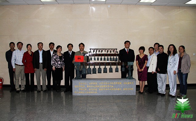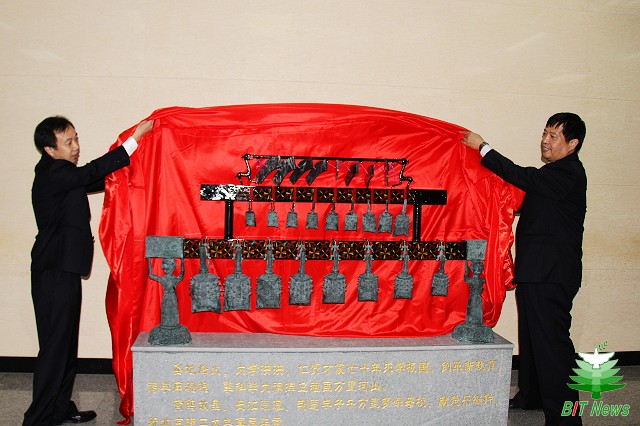 9月21日,湖北省校友会向母校捐赠“国之瑰宝”编钟复制品揭幕仪式在图书馆大厅举行。出席仪式的有湖北省校友会会长、湖北天府山珍集团董事长、82级自动控制系校友宋新林,湖北省校友会副会长兼秘书长、华中科技大学教授、94级自动控制系校友马泳,湖北省校友会副会长张哲英,校党委副书记、工会主席侯光明,原常务副校长、教授、博士生导师李志祥。党委宣传部部长、学校文化建设办公室主任贺亚兰主持仪式。