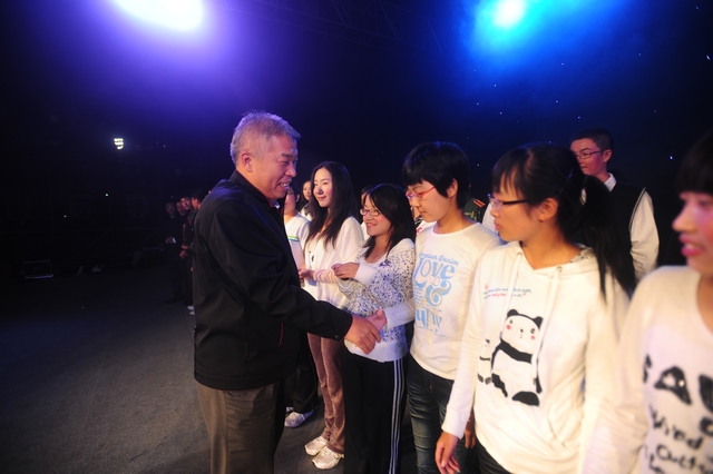 同学们的笑声、欢呼声与炫目的舞台灯光交织在一起,共同构成一片欢乐的海洋。演出结束后,副书记、副校长李和章走上舞台,与所有演职人员亲切握手,共同庆贺2010级学生军训文艺汇演圆满落幕!