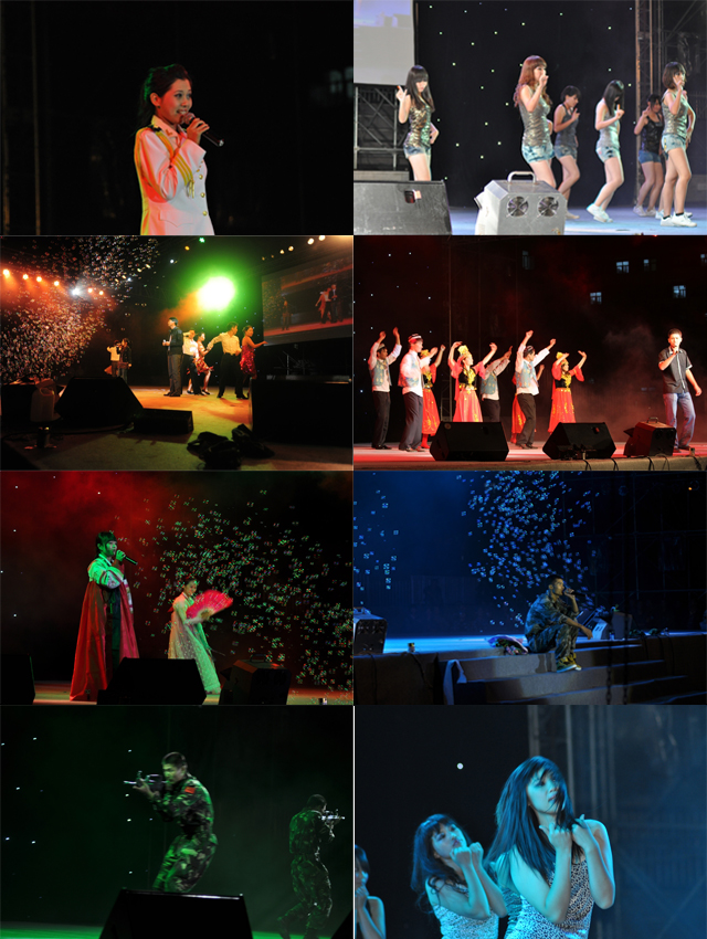 一曲高昂的《我要飞》拉开了晚会的序幕,现场气氛欢快而热烈。我们从四面八方走到一起,我们从五湖四海来到这里,我们共同唱响《东西南北兵》,我们跳起《军中战舞》,演绎着《迷彩青春》;现代大学生不仅能演绎传统京剧选段《贵妃醉酒》的民族韵味,还能表现现代舞《hot issue》的热情洋溢;来自教官的一曲《one love》,向我们展示了《教官的风采》;平日里严肃的指导员们也有可爱的《小酒窝》;在军训即将结束之际,学员们用《感恩的心》表达了对学校、老师、教官、指导员和同学们的感激之情。