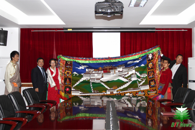 9月25日上午,10位在校藏族学生代表北理西藏校友会向母校捐赠了一幅绘着西藏布达拉宫的唐卡,副校长杨宾和党委副书记、副校长李和章代表学校接受了捐赠。统战部、教务处、学生工作处、研究生工作部、招生就业处等相关部门负责人出席了捐赠仪式。