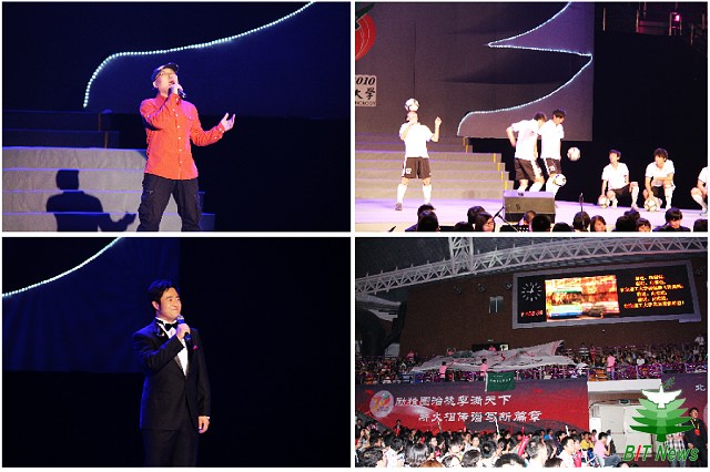 忆往昔,高歌革命岁月;看今朝,谱写当代风采。理工足球队多年在中甲球场上拼杀,成为全国所有高校中唯一一支挺进职业联赛的球队,她是每位北京理工人的骄傲与自豪。香港理工大学足球队员与我校足球队同台,并献上歌曲《足球季风》,带我们共同领略了他们在绿茵场上的拼搏精神。激情豪迈的《金年会jinnianhuicom校歌》顿时掀起了整场晚会的高潮,“我们青春飞扬,振翅翱翔远方,为了和平的梦想,贡献智慧和力量”,全场观众抑制不住内心的激动,跟随着熟悉的旋律放声高歌,一面巨大的校旗在观众手中传递,体育馆内久久回荡着着校友们为母校献上的歌声与祝福。