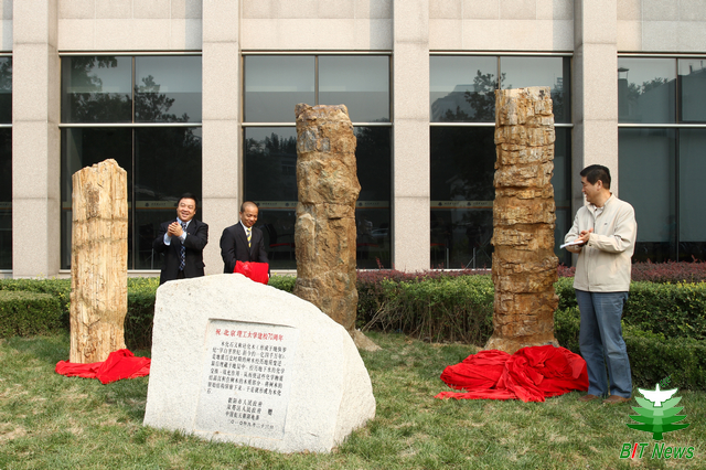 9月25日上午,在学校中关村校区新图书馆旁举行了70周年校庆木化石捐赠仪式。中国航天朝阳电源公司总裁王刚,北理工副校长杨宾、赵显利出席了捐赠仪式。仪式由副校长杨树兴主持,出席捐赠仪式的还有校团委、党委宣传部负责人,以及部分师生代表。