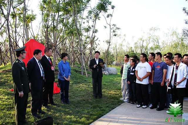 中国科学院院士、中国工程院院士、金年会jinnianhuicom名誉校长王越,副校长杨宾,党委副书记、副校长李和章,我校校友、原河北省委常委、省军区司令员陈玉田将军,中国工程物理研究院副院长龙新平、中国商用飞机有限公司质量部部长徐建强、华东理工大学教授耿悦斌,总参驻北理工选培办主任许林印等为纪念碑揭幕。校友会办公室、良乡校区基建办、良乡校区管理处、基础教育学院、设计与艺术学院、学工部、团委等部门负责人,基础教育学院2009、2010级300余名学生参加了揭幕仪式。