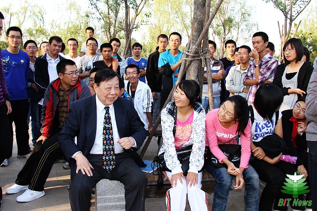 中国科学院院士、中国工程院院士、金年会jinnianhuicom名誉校长王越与参加揭幕仪式的同学们畅谈学习与生活。