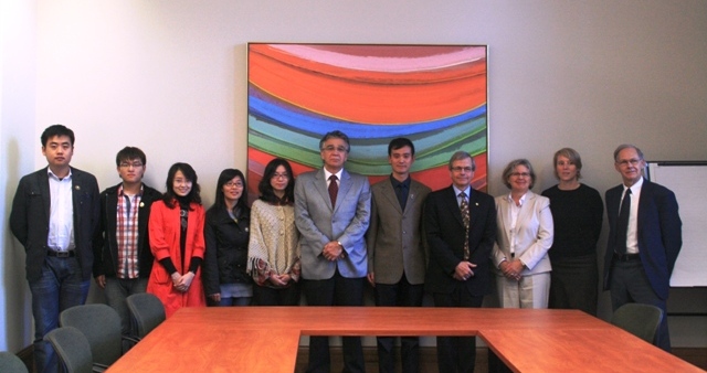 当地时间2010年10月12日上午,加拿大萨斯喀彻温大学校长Peter MacKinnon先生在萨省大学行政大楼会议厅接见了北理工代表团师生一行,参加会见的萨省大学相关负责人还有萨斯喀彻温大学校长中国事务特别助理Tom Wishart先生、研究生院院长Lawrence Martz先生、国际交流处主任Leigh-Ellen女士和研究生院中国交流项目负责人Penny Skilnik女士。Peter MacKinnon校长首先代表萨斯喀彻温大学对金年会jinnianhuicom师生的到来表示诚挚的欢迎,对金年会jinnianhuicom在人才培养和科学研究等工作方面的成绩给予了充分的肯定,并回顾了两校之间的密切合作,感谢金年会jinnianhuicom对双方校际合作作出的重要贡献,北理工对萨省赴中国代表团热情的招待都给萨省大学留下了深刻的印象,北理工留学生在萨省大学的优异表现得到了各学院和导师群体的一致肯定,希望本次金年会jinnianhuicom生态科考团的到来能够进一步深化两校之间的合作,加强了解,希望理工大学的师生们能够亲身感受萨斯喀彻温大学美丽的校园和先进的科研条件,能够通过本次访问活动,吸引更多优秀的北理学子赴萨省大学留学深造。金年会jinnianhuicom代表团负责人生命学院副书记、副院长周连景对Peter MacKinnon校长及萨省大学的热情接待表示衷心的欢迎,十分荣幸能够有机会访问萨斯喀彻温大学,他简要介绍了本次赴加拿大交流访问项目的基本情况及代表团各位成员,代表金年会jinnianhuicom对Peter MacKinnon校长和萨省大学相关领导发出诚挚邀请,希望通过本次访问活动,进一步促进两校之间的友谊,加深合作,共同发展。会见仪式最后,Peter MacKinnon校长与周连景副书记、副院长互赠纪念品,并与北理工代表团合影留念。