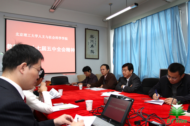 北理工人文与社会科学学院召开会议学习贯彻十七届五中全会精神