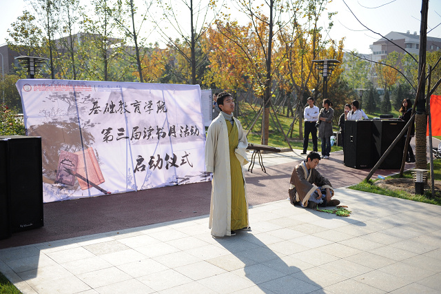 11月4日中午,基础教育学院第三届“读书月”活动正式启动。基础教育学院、校团委、党委宣传部等有关部门教师代表,基础教育学院各学部和分团委相关负责老师,以及学院部分读书爱好者齐聚良乡校区北湖湖畔,共同参加以“读书破万卷,书香满校园”为主题的第三届“读书月”活动启动仪式。
