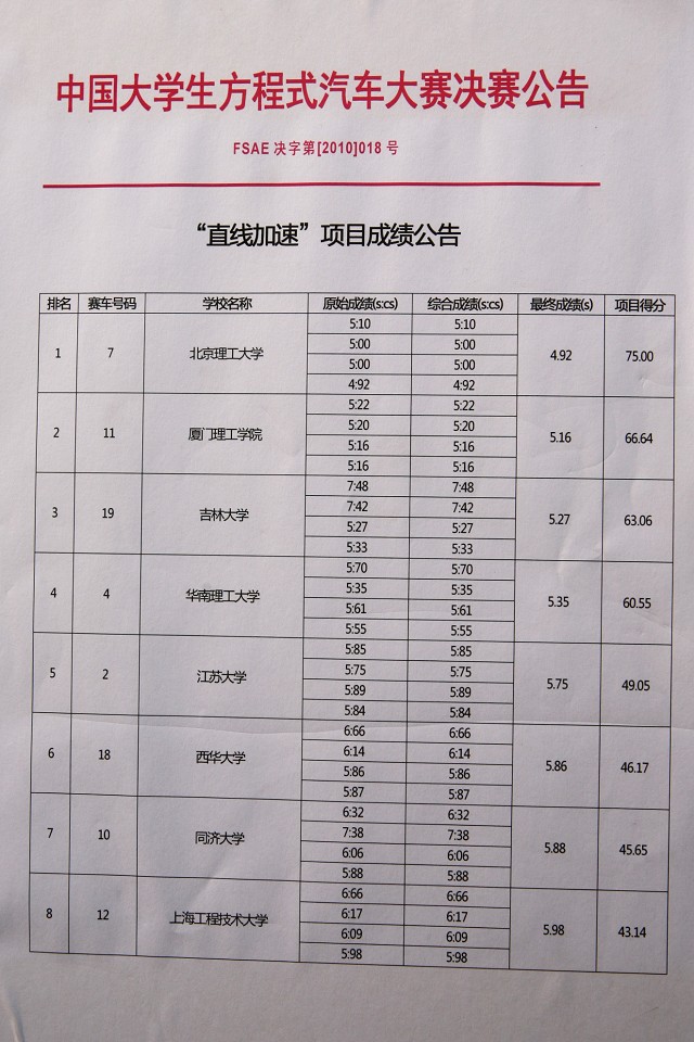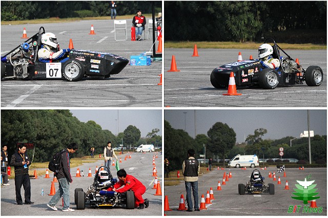 75米加速的表现更是堪称优秀,加速时间仅为4.92秒,成为21支参赛队中唯一一支突破5秒大关的队伍。许多一直关注北理工车队的人都非常惊讶:昨天还出了那么大的事故,今天上午怎么就能跑出如此优异的成绩?究其根本正是因为我校学生团队协作的精神、锲而不舍的毅力、追求卓越的气质和扎实肯干的工程水平。