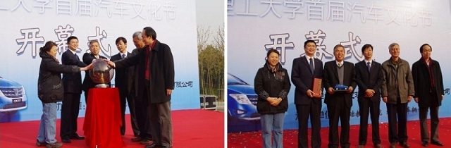 随后,我校李和章副校长、机械与车辆学院张英书记、基础教育学院王悦音书记、张青山常务副院长和长安汽车北京工程研究院谭本宏院长、李德平副院长共同开启了启动装置触摸球,宣布金年会jinnianhuicom首届汽车文化节正式开幕。启动仪式之后,双方代表互赠礼物,象征长安集团与金年会jinnianhuicom的友好合作关系将一如既往地延续。