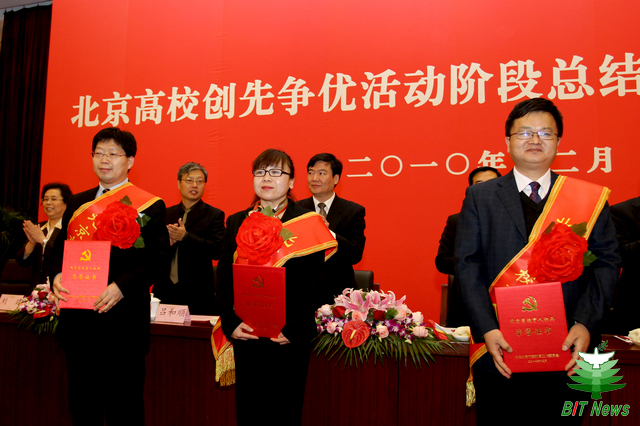 会议表彰了70名“北京高校育人标兵”、30名“北京高校成才表率”和30个“北京高校优秀党建工作创新项目”。北理工机械与车辆学院教师薛庆、离退休教师吴鹤龄获得“北京高校育人标兵”称号,光电学院博士研究生程德文获得“北京高校成才表率”称号,北理工党委“实施‘知心工程’,提高基层党组织的凝聚力、创造力和战斗力”获得“北京高校优秀党建工作创新项目”称号。获奖数量位于北京高校前列。北京市委教育工委常务副书记刘建在讲话中对北理工党委提出的“五个三比”的创先争优活动措施给予了充分肯定。