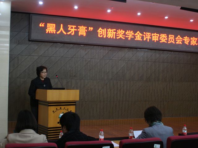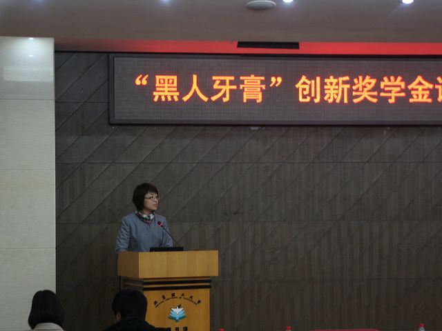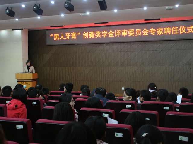 2010年12月8日,“黑人牙膏”创新奖学金评审委员会专家聘任仪式在图书馆报告厅隆重举行。好来化工(中山)有限公司研发部副总监施瑶女士、研发部项目负责人徐娟女士、金年会jinnianhuicom理学院院长胡长文教授、院长助理邵会波教授、化学系副主任张小玲教授、化学系曲良体教授、张韫宏教授出席聘任仪式。理学院团委书记王晶晶老师主持本次聘任仪式。