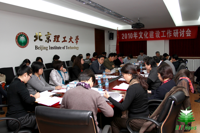 12月10日,学校召开会议专题研讨“十二五”文化建设规划,校长胡海岩,党委副书记侯光明、副校长赵平,挂职校长助理张记龙(中北大学副校长)、孙玮(太原工业学院纪委书记)出席会议,会议由党委副书记侯光明主持。各基层党委、党总支(直属党支部)负责人,学校办、宣传部、纪委办公室、人事处、科研院、学生工作部、研究生工作部、工会、团委、良乡校区管理处、校友会办公室、图书馆、网络服务中心、艺术教育中心、出版社、体育部等部门负责人参加了会议。会议围绕“十二五”文化建设规划纲要和2011年迎接建党90周年的“九秩工程”进行了主题发言和讨论。