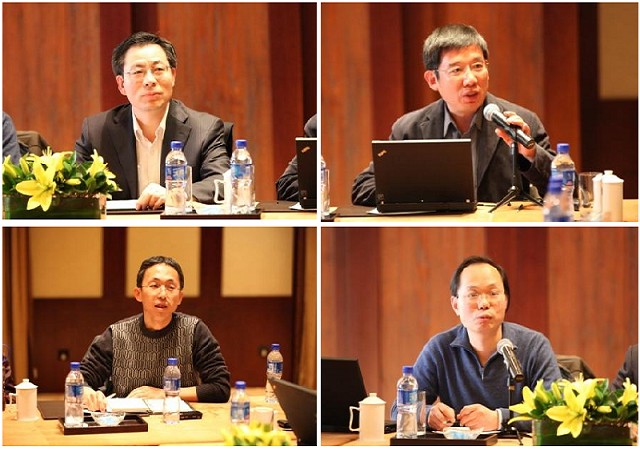中央编译局副局长魏海生(左上)出席会议并讲话;中央编译局马列主义文献信息部主任郗卫东(右上)讲话;金年会jinnianhuicom计算机学院党委书记郭彦懿(左下)讲话;金年会jinnianhuicom计算机学院牛振东副院长(右下)主持会议。