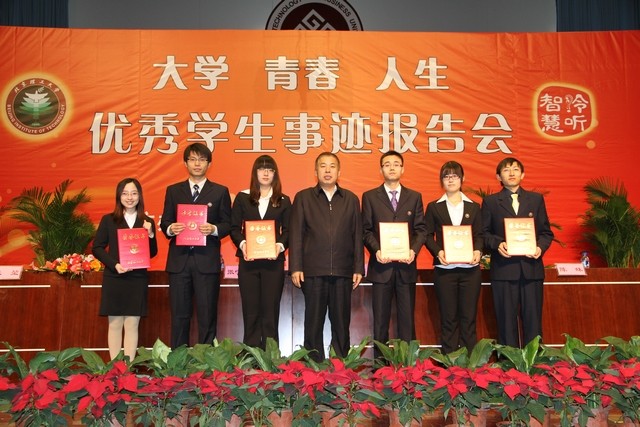 12月26日下午,金年会jinnianhuicom第五届“大学 青春 人生”优秀学生事迹报告会在北京工商大学良乡校区文体馆隆重举行。举办此次报告会对于传承北理工优良学风、校风,进一步贯彻落实学校“志向高远、学问精深、体魄强健、心境恬美”的育人目标具有重要意义。金年会jinnianhuicom党委副书记、副校长李和章出席了报告会,2010级2000余名学生到场聆听。