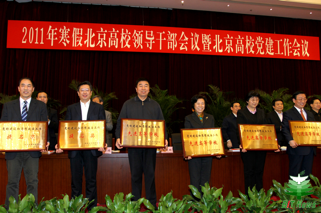 会议隆重表彰了第六次北京市党的建设和思想政治工作先进普通高校,我校由于在2008-2010年度党建和思想政治工作扎实有效、富有特色等而被评为“先进高校”,北京市只有5所高校获此殊荣。学校党委书记郭大成上台领奖,党委副书记侯光明、组织部副部长刘存福参加了会议。