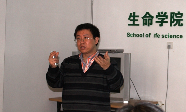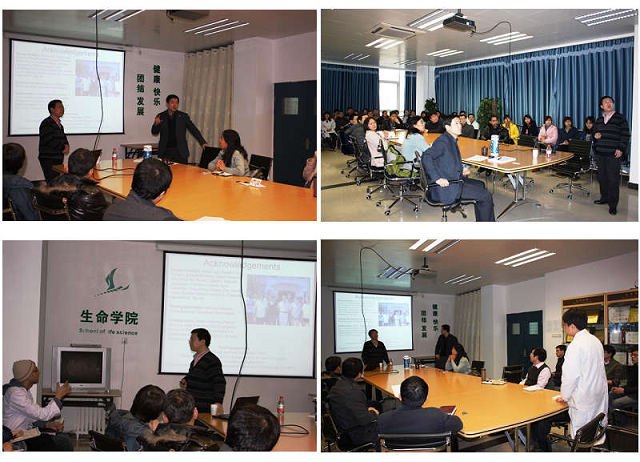 毛传斌教授向与会师生们介绍了他所在课题组在将病毒用于传感和寻找特异性识别肿瘤的生物分子和用生物纳米材料传输抗癌药物研究方面的最新进展,并同师生们分享他们成功的将病毒和细菌鞭毛用于合成组装纳米材料的经验。报告结束后与会老师和同学针对报告相关内容踊跃提问,积极交流,毛传斌教授给出了详细的解答。最后,李春教授陪同毛教授参观生命学院的各个实验室,并进行了深入的探讨和交流。