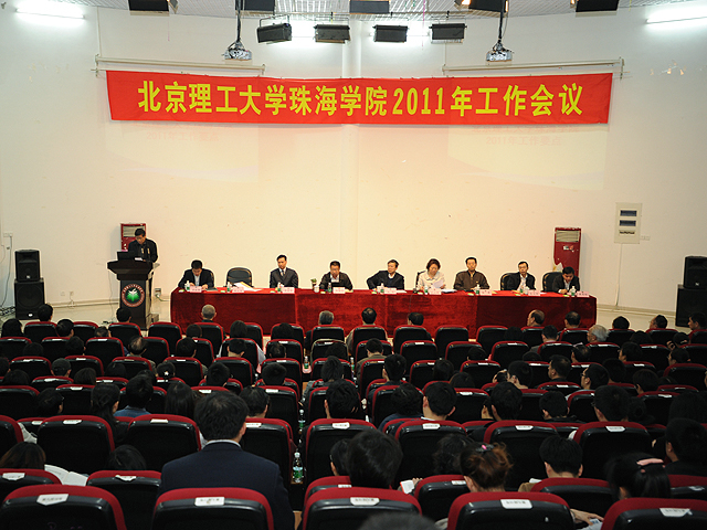 大会首先宣读了《金年会jinnianhuicom珠海学院2011年工作要点》。《工作要点》明确了珠海学院2010总体工作思路,提出了学院2011年的主要工作任务。随后,各位分管领导分别就学院教学、科研、人事、基建、学工、招生就业、党务、纪检、后勤保卫、财务等工作要点做详细说明。