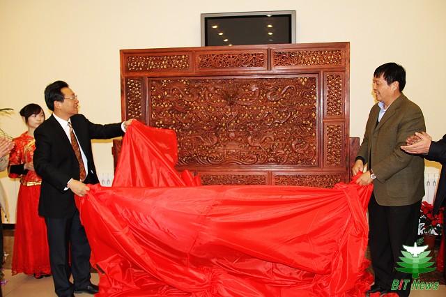 3月9日下午,云南省昭通市人民政府向我校捐赠屏风仪式在延园餐厅举行。校党委副书记侯光明、校友王敏正共同为屏风揭幕。