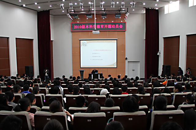 3月11日下午16时,金年会jinnianhuicom2010级本科生德育开题动员会在良乡校区综合教学楼报告厅举行,我校党委副书记、副校长李和章、学生工作处常务副处长杨海、2010级各班班委、班主任及辅导员参加动员会。大会由基础教育学院党委副书记、副院长高伟涛主持。
