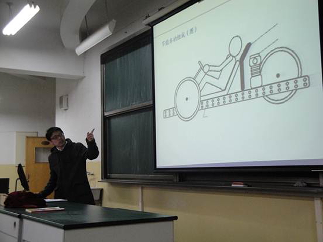 当天下午两点,以节能车为主题的十二中学生选修课准时开课。本次课程由我校节能车俱乐部第三届车队队长李勇为主讲人,他从节能车整体项目到每年的国际国内节能车竞赛,从我校节能车发展现状到节能车的基本原理构造,向现场选修该课程的中学生进行了相关知识的培训和文化讲解,主讲人旁征博引的讲解、深入浅出的分析,引得中学生们连连赞叹,掌声不断。