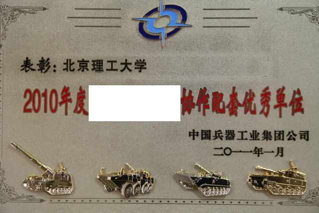 2011年3月,中国兵器工业集团公司召开2010年军品运营总结会,鉴于我校在“××工程”二期协作配套工作中做出的突出贡献,喜获中国兵器工业集团公司表彰。