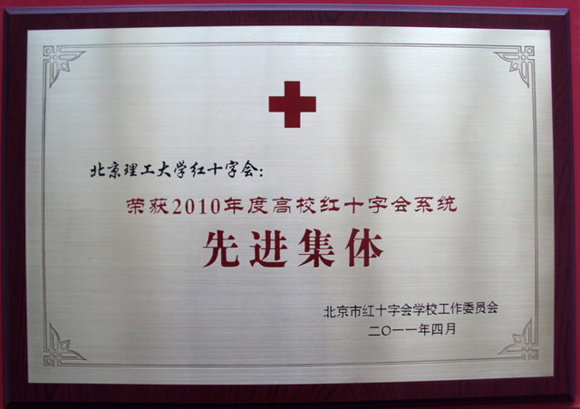 为表彰我校红十字会在过去一年工作中的突出表现,今年4月,北京市红十字会学校工作委员会授予我校红十字会 “2010年度高校红十字系统先进集体”称号。