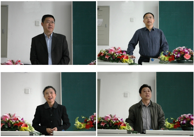 北理工生命学院党委书记李汉军(左上)、研究生院副院长李镇(右上)、生命学院副院长唐晓英(左下)、学员代表药监局器械处处长任达志(右下)发言。