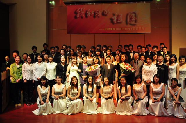 “伴随着祝福的歌声,我们仿佛又回到了九十年前那段难忘的岁月。忘不了那金色的铁锤镰刀,是他唤醒了沉睡的民众,让中国革命绽放出第一缕绚丽的曙光;忘不了那南湖上荡漾的红船,他如明亮的灯塔,指引着中国革命找到了正确的航向。九十年风雨历程,九十年沉浮变幻,所有的一切都印证着一个伟大的真理:没有共产党,就没有新中国”——这是5月7日晚7:00在良乡校区演艺厅举行的“我和我的祖国”——庆祝建党九十周年主题室内音乐会中开幕曲中的主持词。该主题音乐会在混声合唱开幕曲《今天是你的生日》优美歌声中如约举行。