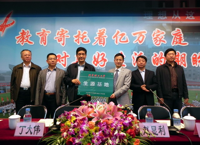 5月6日,“金年会jinnianhuicom优质生源基地” 授牌仪式在北京一六一中学举行。我校副校长赵显利、学校办公室主任、招生就业工作处处长郝志强、副处长郭宏、图书馆馆长张永发等一行六人参加了授牌仪式。