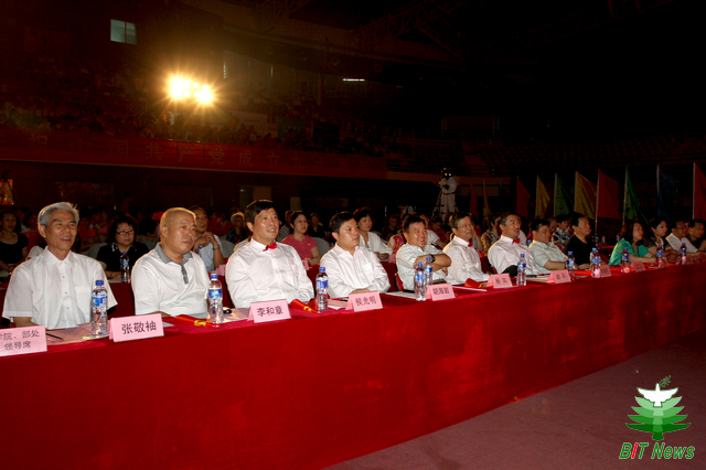 作为2011年“九秩工程”文化建设项目的重要活动,本次比赛受到了学校领导的高度重视。在学校的校领导基本都参加了本次比赛,校领导同广大师生一同走上舞台为党的生日引吭高歌,各学院各部门的主要领导也悉数登台,同本单位的合唱团一起参加了比赛。
