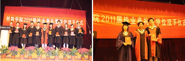 6月21日,材料学院2011届毕业典礼暨学位授予仪式在七号楼报告厅隆重举行,材料学院院领导、各系教师出席了典礼,同所有毕业生以及远道而来的家长们一起共同见证这个收获的激动的时刻。毕业典礼由07级本科毕业生李巍巍主持,由于学院博士毕业生中有一位留学生,所以还特邀了07级本科毕业生武金丹担任英语主持人。